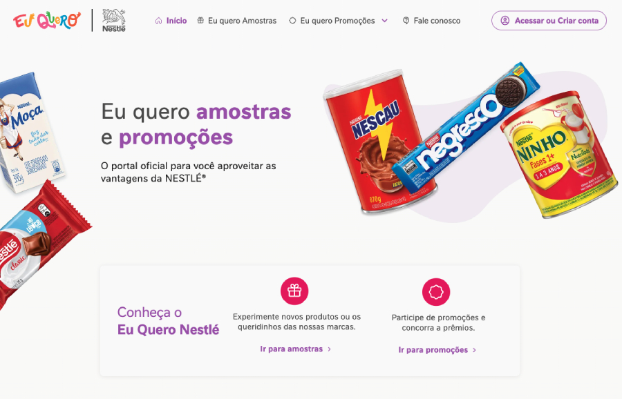 O Eu Quero Nestlé é o site de promoções da marca. Nele, os usuários encontram cupons, campanhas especiais e, quando disponível, a famosa “amostra grátis Nestlé”.